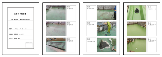 依頼主が立ち合い、工事完了の確認を行い、問題がなければ施工完了です。以下のような工事報告書を提出してくれる業者もあります。
