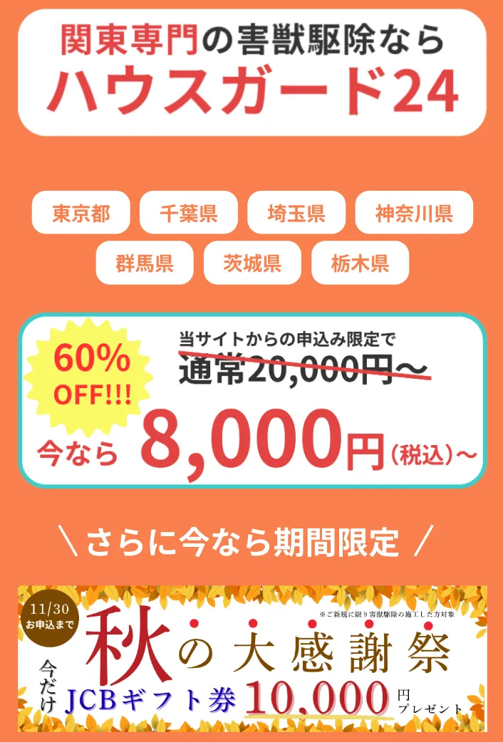 • 保証の手厚さ重視:街角害獣駆除相談所