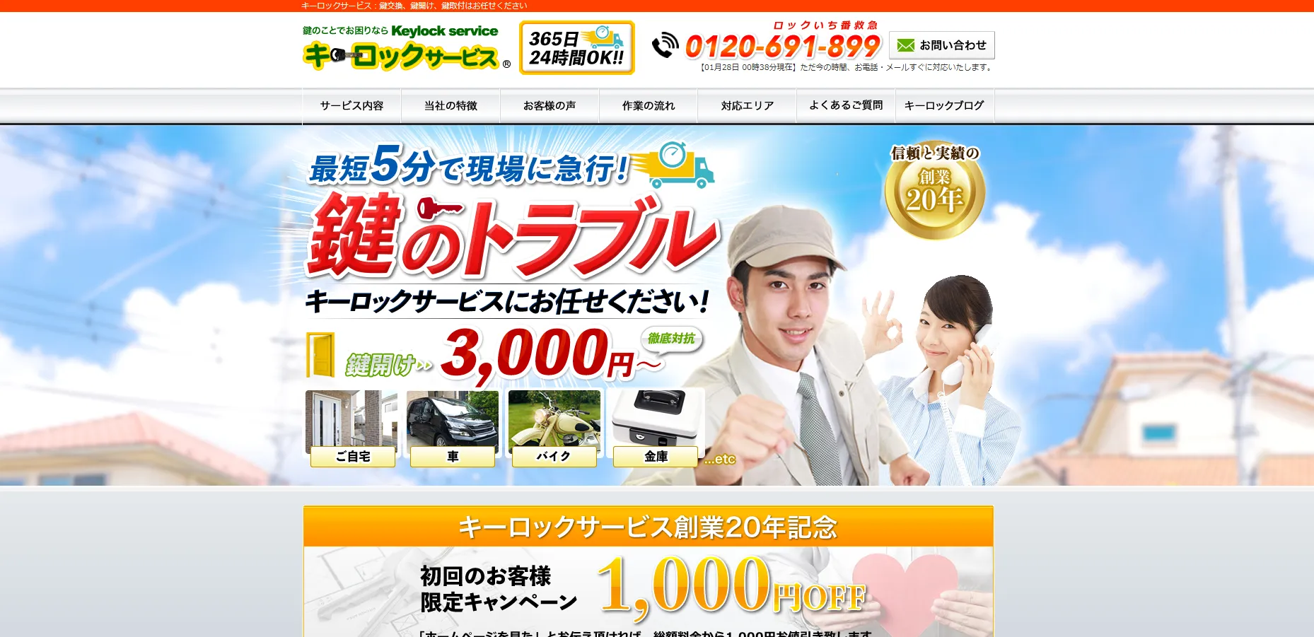 見積もり提示後の追加費用なしで明朗会計、住宅・車・金庫まで幅広く対応。