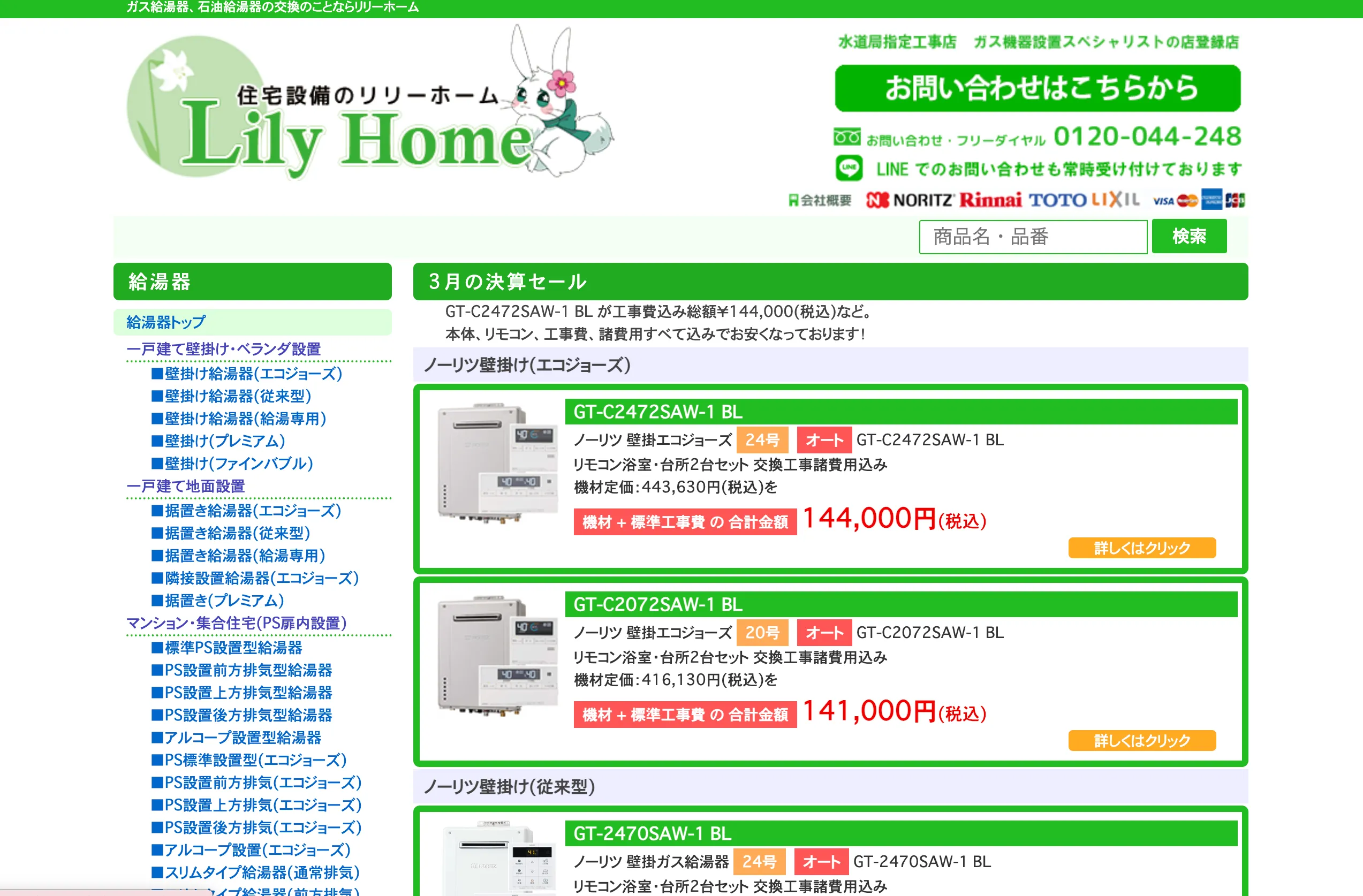 - 給湯器の本体価格が最大80%OFF