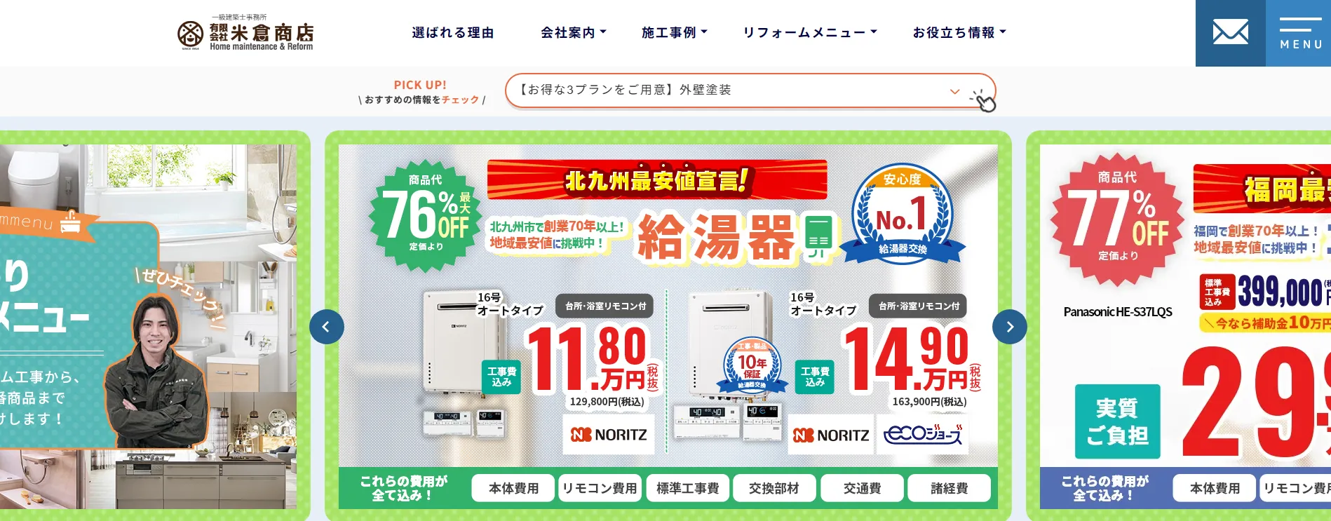 久留米市の実家で給湯器を交換しました。高額になるかと心配でしたが、複数社の見積もりを比較した結果、価格と対応のバランスでこちらに決定。