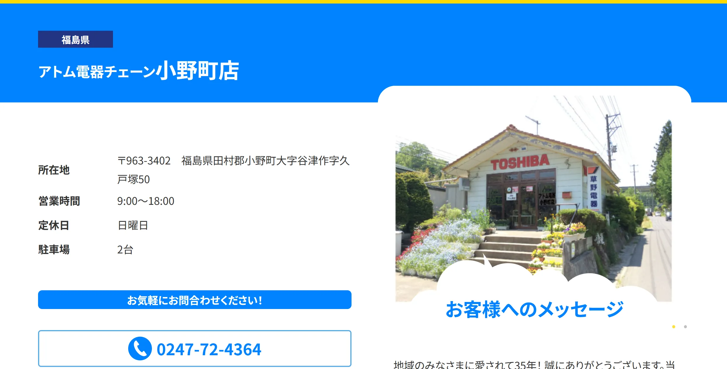 | 運営会社 | 草野電器 福島県田村郡小野町大字谷津作字久戸塚50 |