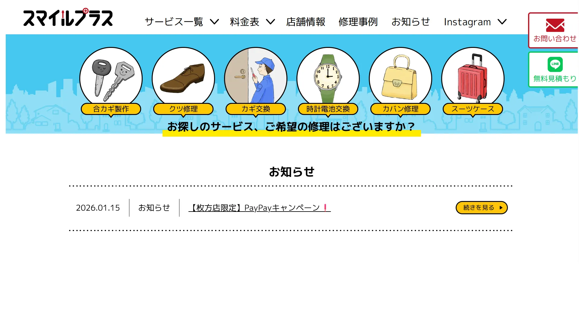 | 運営会社 | 株式会社スマイルプラス 〒573-0032 大阪府枚方市岡東町18−15 キューブ枚方駅前 1F西棟 |