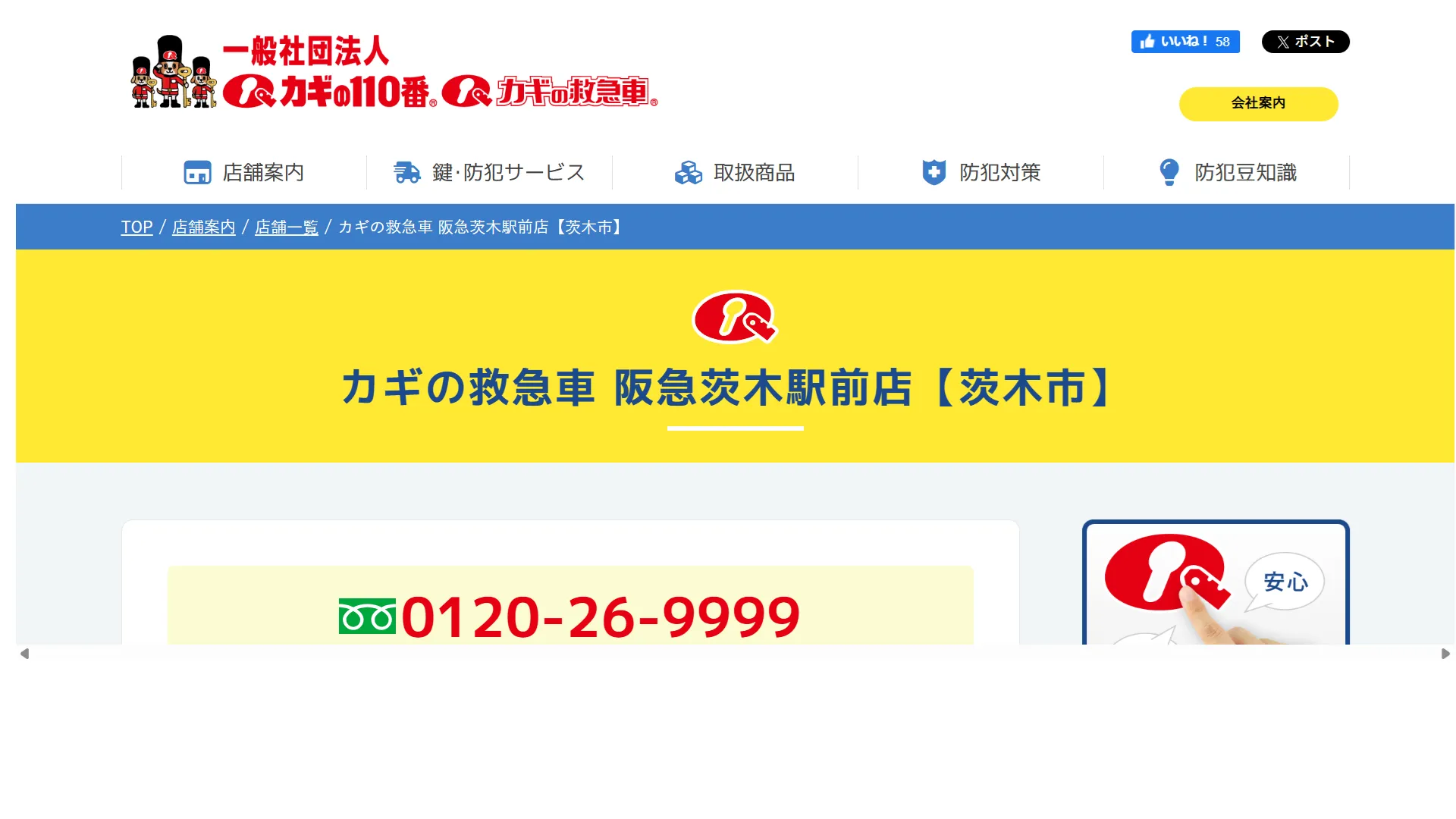 | 運営会社 | カギの救急車 阪急茨木駅前店 〒567-0828 大阪府茨木市舟木町5−7 川越ビル 1F |
