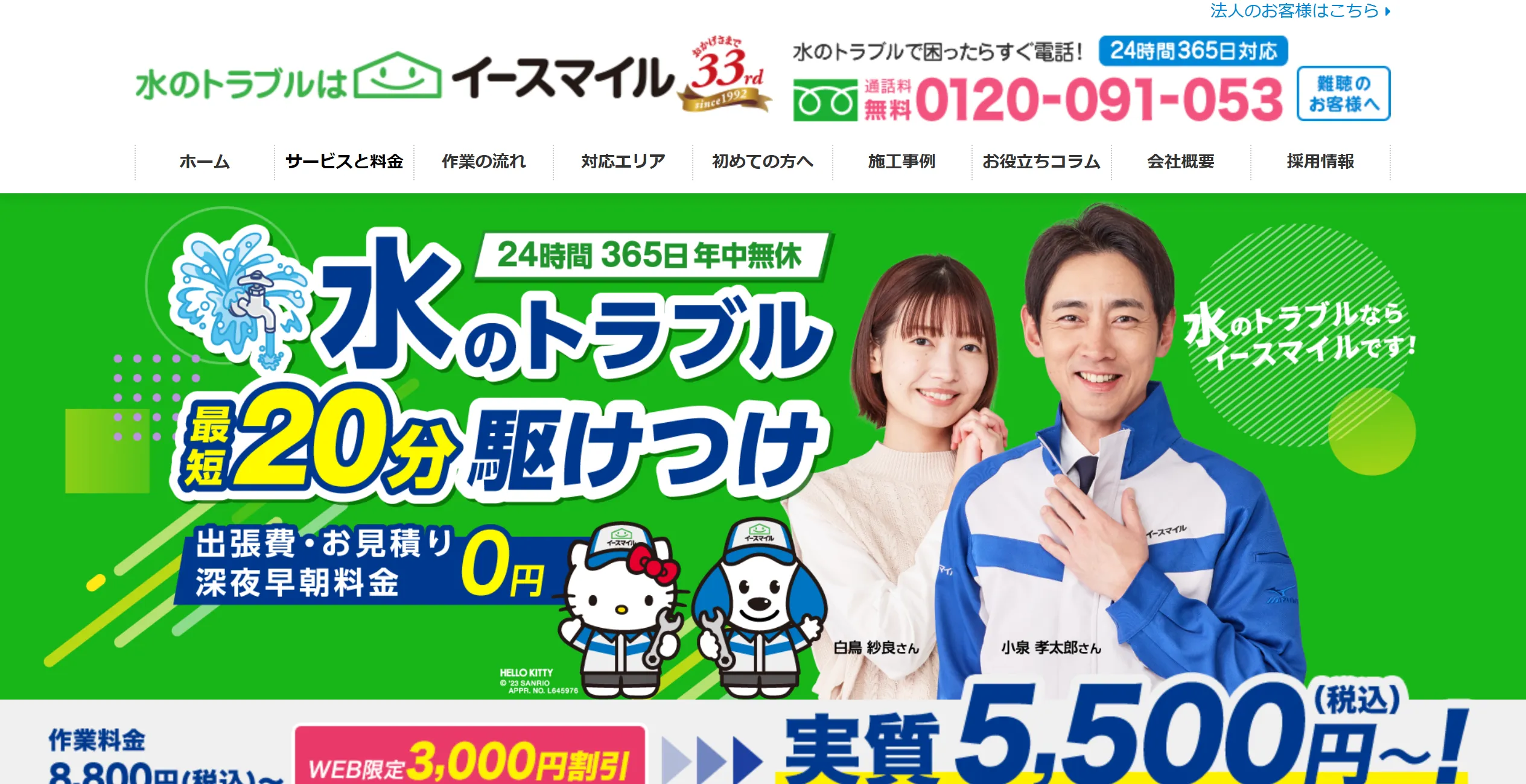 出張見積りは最短当日可で、実際の工事は契約後最短2日~となっています。Googleの口コミ評価は4.8と非常に高く、ベテランスタッフのスピーディーで丁寧な対応に定評があります。 支払方法はクレジットカード(前払い)のほか、コンビニ決済・銀行振込・NP後払い(後払い)などライフスタイルに合わせて柔軟に選択可能です。