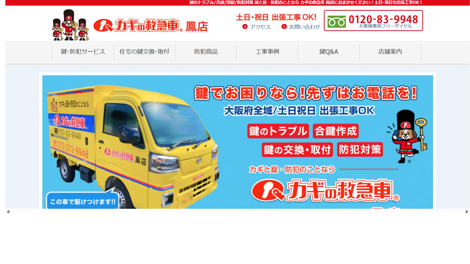 | 運営会社 | カギの救急車 鳳店 〒593-8324 大阪府堺市西区鳳東町7丁838 1階 |