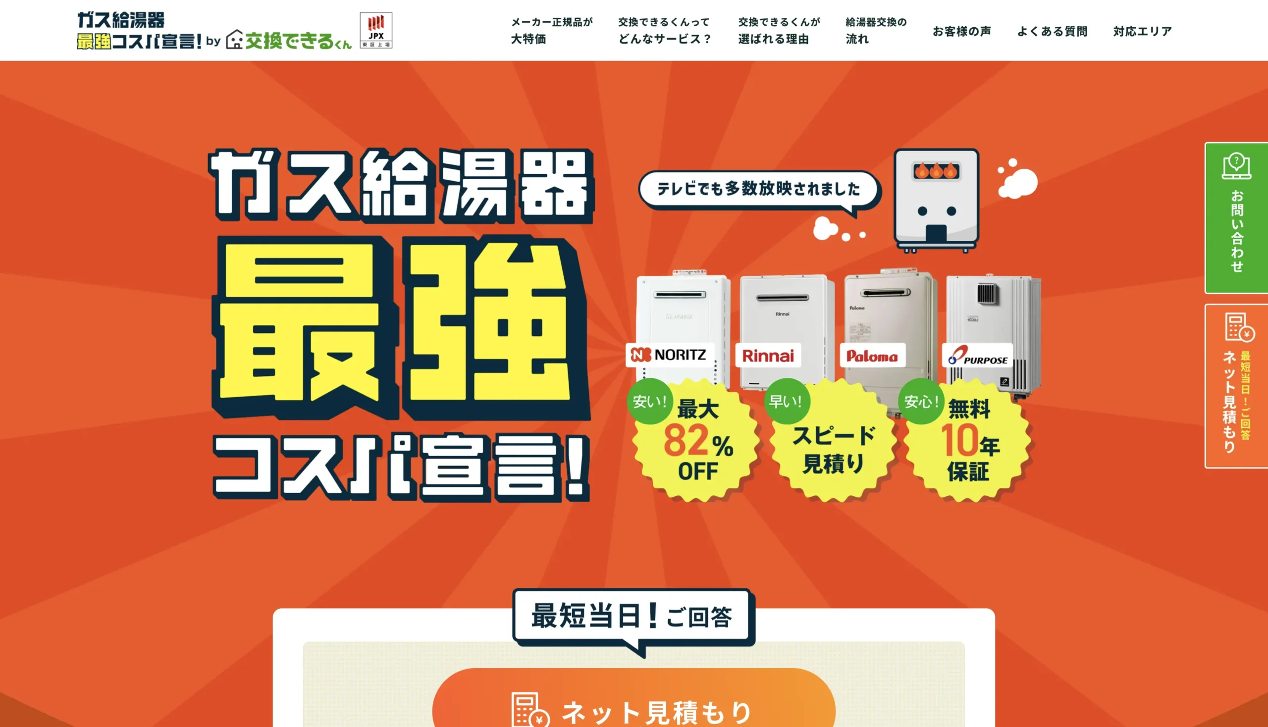 交換できるくんは、株式会社交換できるくんが運営する給湯器などの交換業者です。