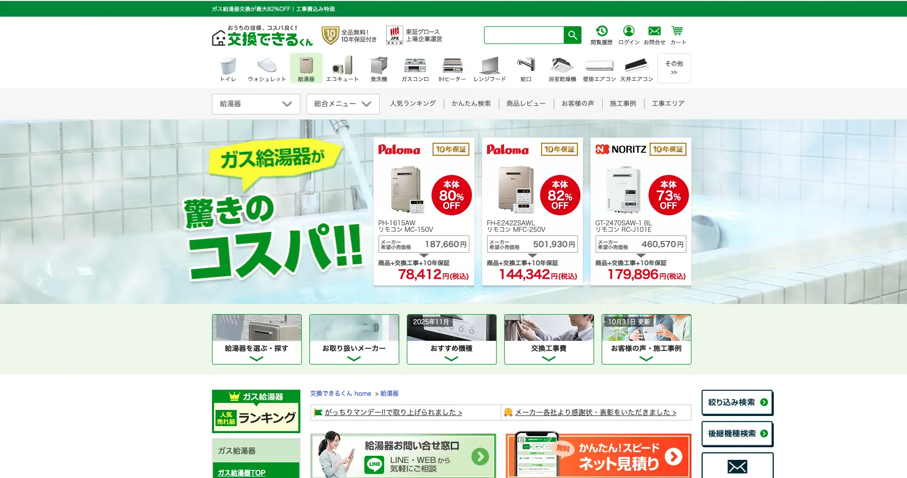 交換できるくんは、株式会社交換できるくんが運営する給湯器などの交換業者です。
