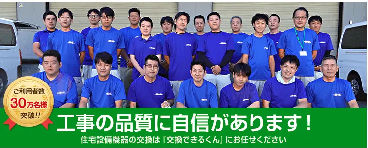 交換できるくんの工事は、技術力と経験に優れた優秀な設備エンジニアが担当します。工事の質を落とさず、責任を持って施工する「責任施工」体制であるため、信頼できるプロの技術者に任せたいと考える方におすすめです。