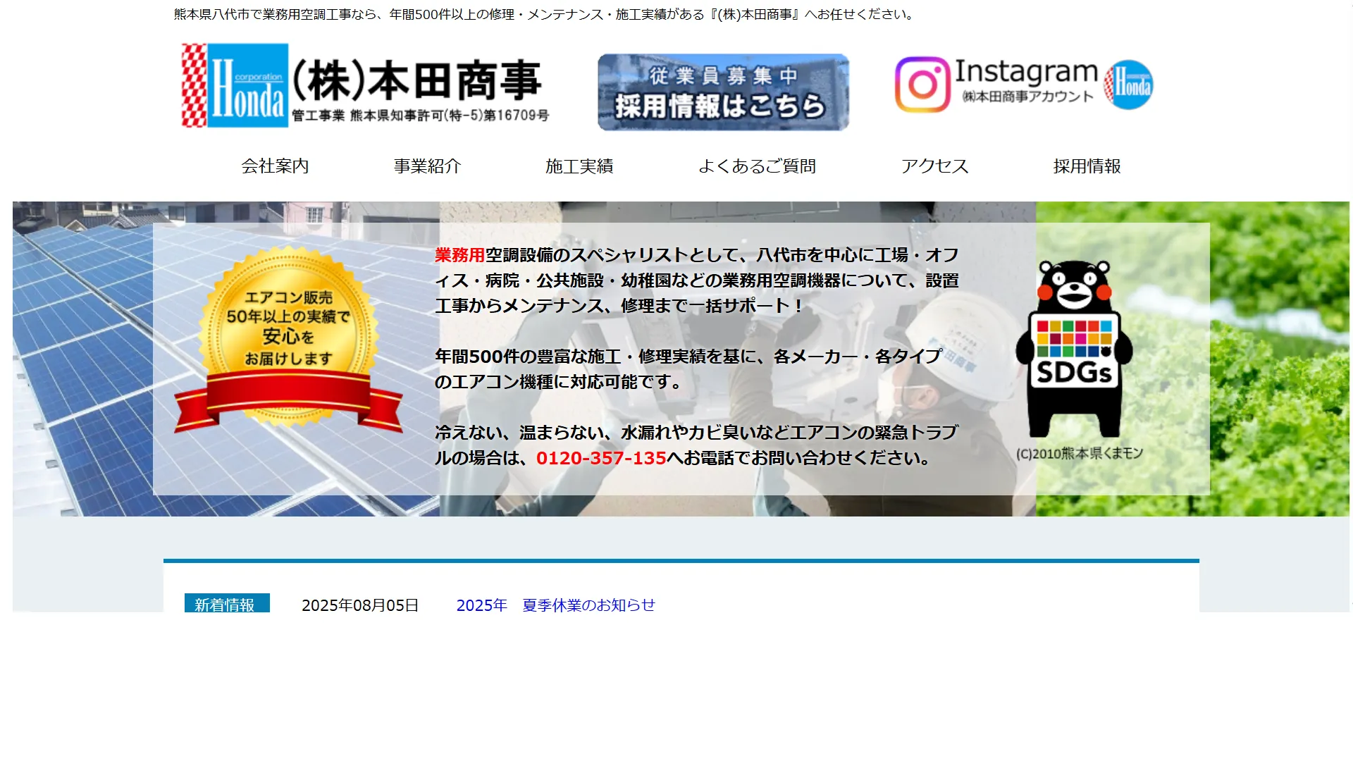 株式会社本田商事「業務用 エアコン119番」「ボイラー119番」八代市 の業務用エアコン 故障 修理 点検 撤去 ・ メンテナンス!! ダイキン ・ 日立 ・ 三菱 対応