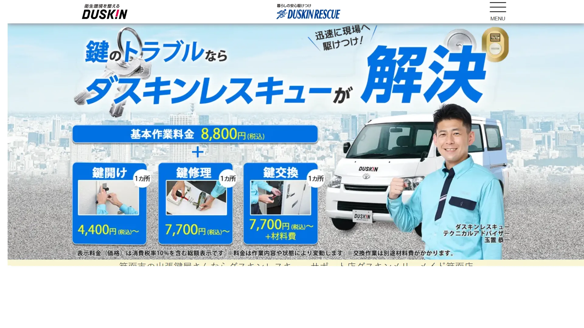 最短15分〜スタッフが急行し、見積もり後の追加料金なしの明朗会計で安心です。