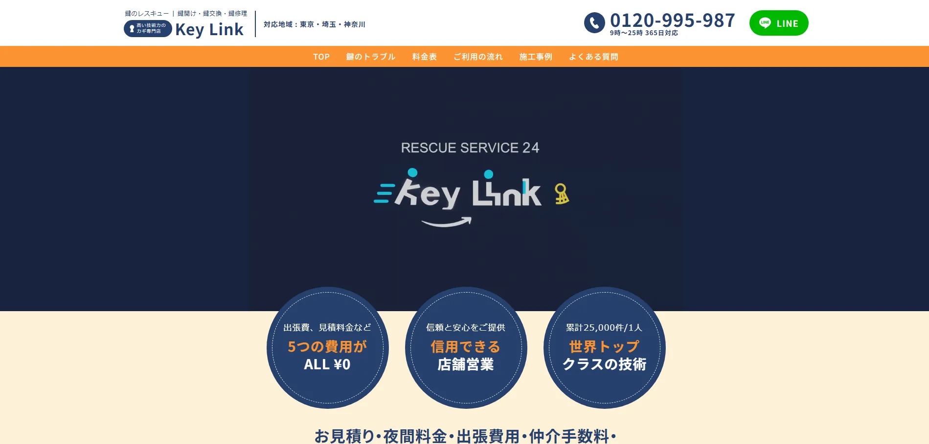 鍵猿は、全国で年中無休・出張見積もり無料の鍵トラブル専門サービスです。