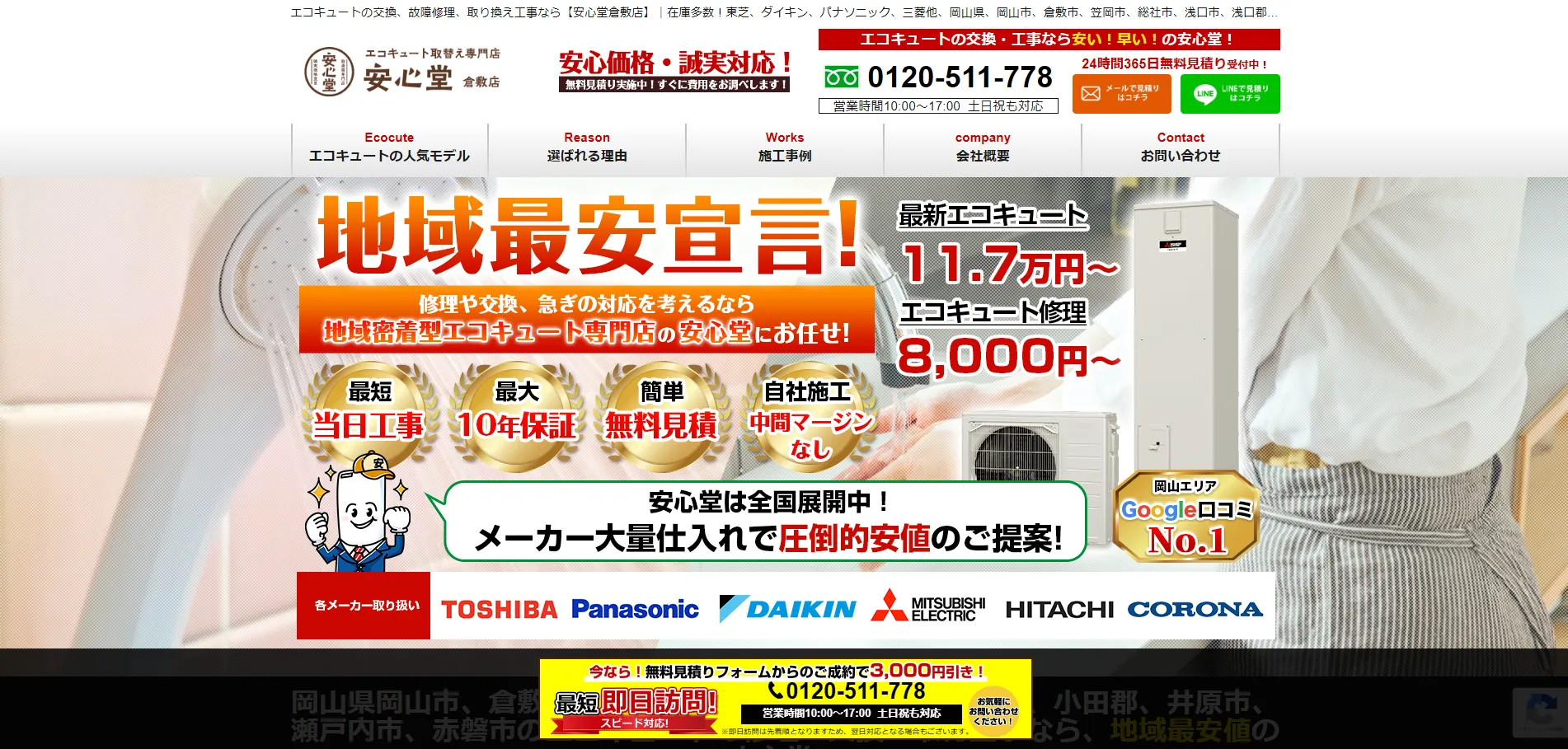 運営会社 | エコキュート専門店エコワン 岡山県岡山市東区西大寺中野874-11 |