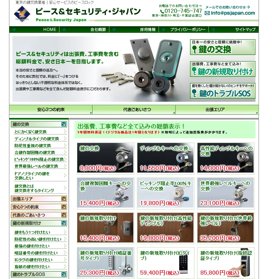| 対応サービス | ・鍵交換 ・鍵開け ・鍵修理 ・鍵作成 (住宅・車・金庫にも対応可能) |