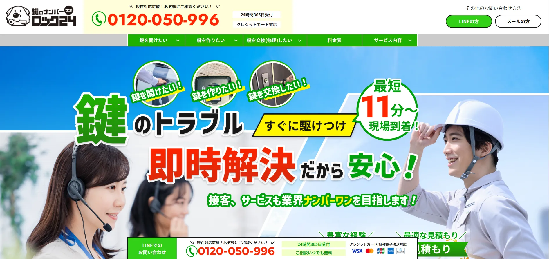| 駆け付け目安 | 依頼後最短5分〜で現場到着可能(状況により変動) |