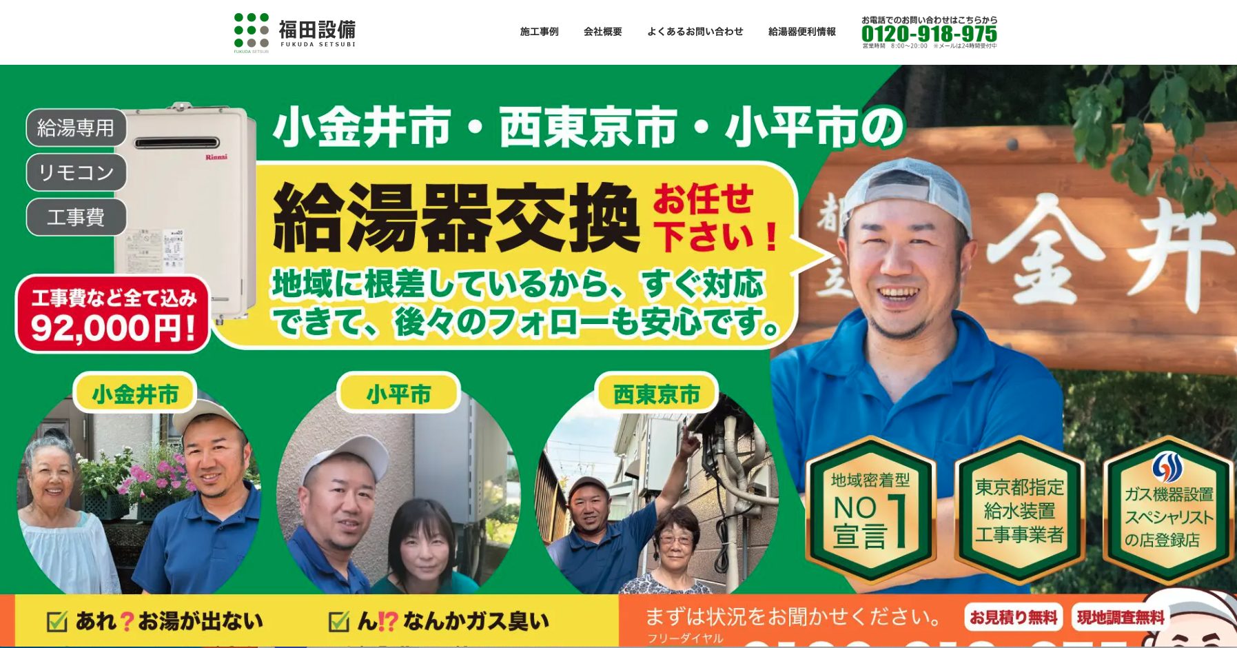 小金井・小平エリアの給湯器交換|株式会社福田設備