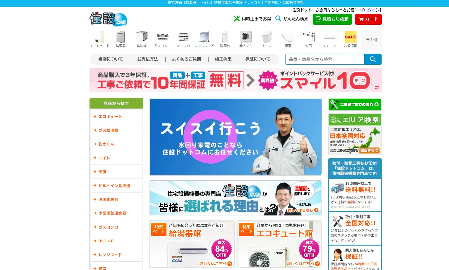 - 商品保証と工事保証が10年間無料