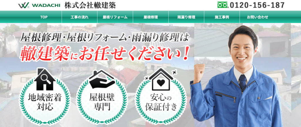 最短即日対応が可能なため、突然の雨漏りや台風後のトラブルにも迅速に対応してもらえるのが強みです。