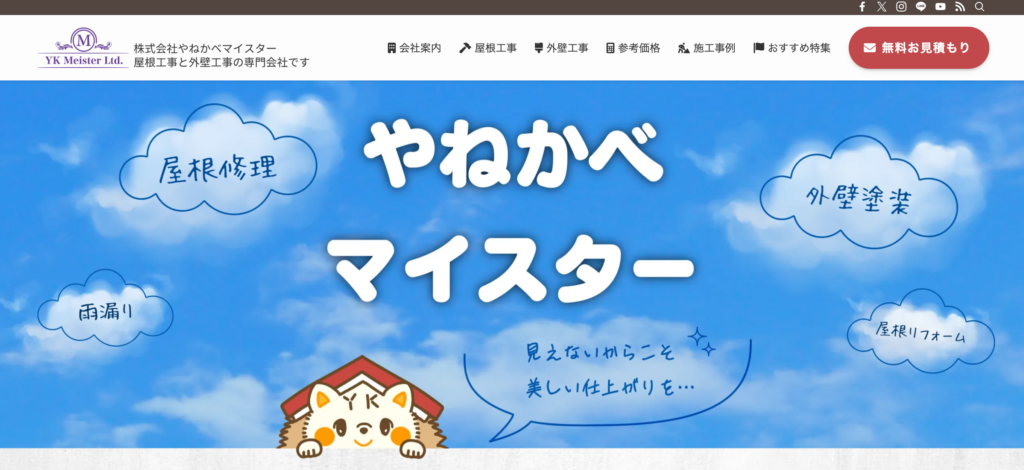| サービス内容 | 屋根塗装、屋根カバー、瓦・漆喰工事、雨樋工事、天窓工事、屋根葺き替え、防水工事など |