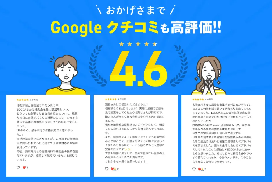 ただし太陽光発電の設置費用や提案内容は住宅条件によって異なるため、最終的には3社で相見積もりを取り、比較したうえで判断することをおすすめします。