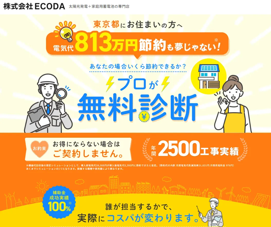 公式サイトECODAに無料相談する省エネタイガーに無料相談する節電プロに無料相談する