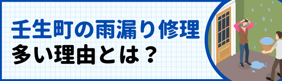 壬生町はゲリラ豪雨や台風の影響を受けやすく、築年数の経った住宅も多いため、雨漏りが起こりやすい地域です。雨染みやポタポタとした水漏れは、すでに建物内部で被害が進行しているサインでもあります。