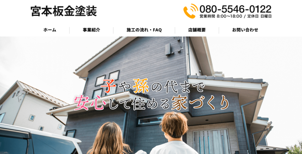 サービス内容雨漏り修理、外壁塗装、屋根塗装、板金工事、防水工事、ベランダ修理など