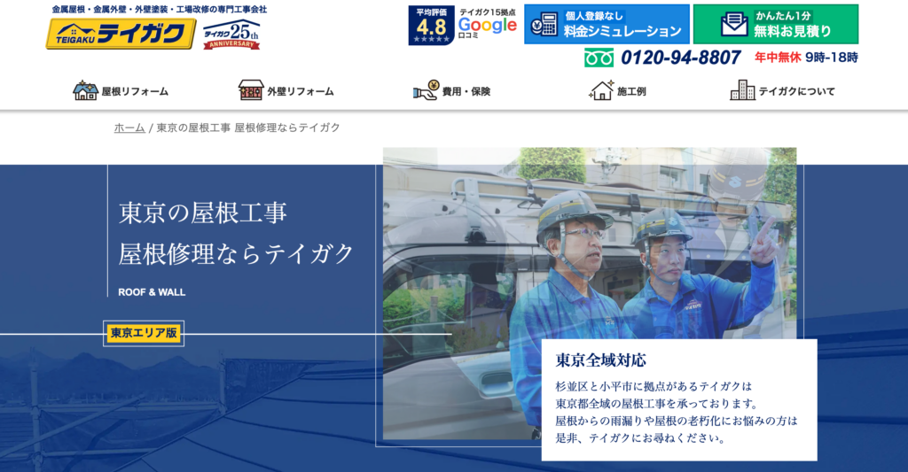 | サービス内容 | 雨漏り調査、雨漏り修理、屋根塗装、雨樋修理、屋根カバー工法など |