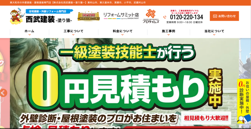 サービス内容屋根修理、雨漏り修理、外壁塗装、防水工事、内装工事など