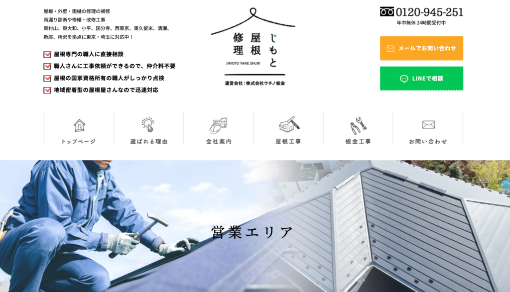 最短即日対応が可能なため、突然の雨漏りや台風後のトラブルにも迅速に対応してもらえるのが強みです。