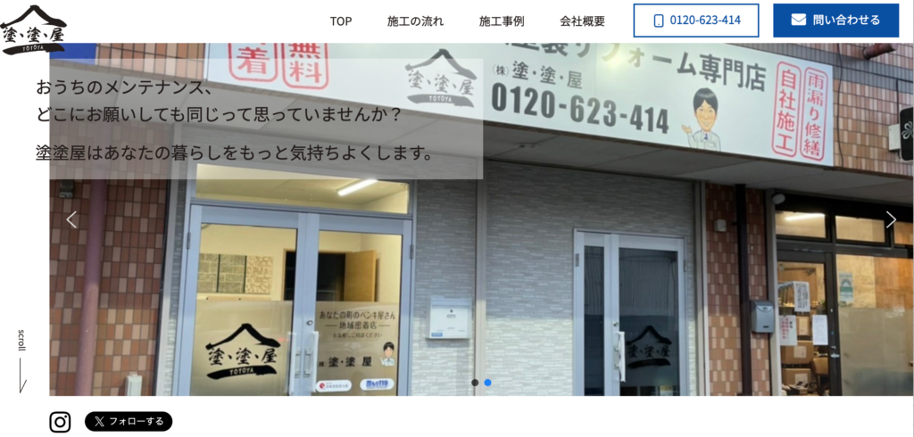 | サービス内容 | 塗装⼯事、防⽔⼯事、シーリン グ⼯事、 板⾦⼯事、屋根⼯事、リフォーム⼯事など |