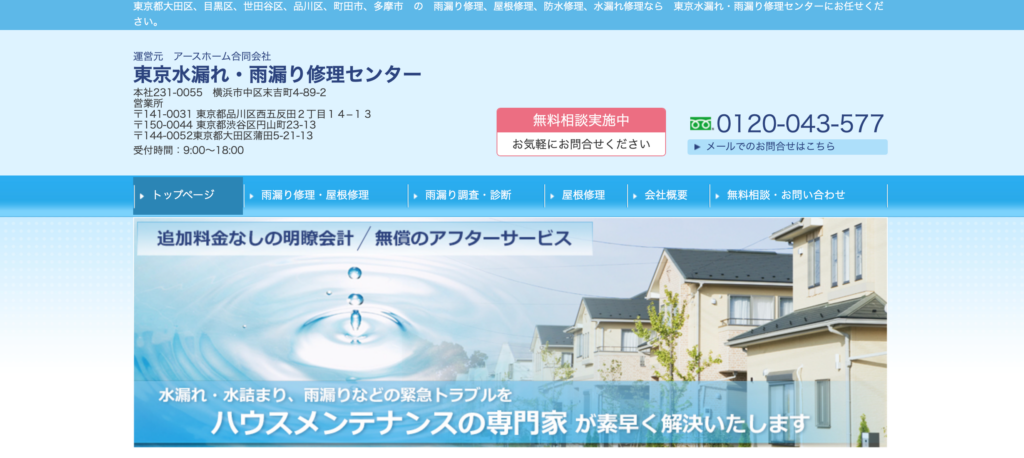 | サービス内容 | 原因調査(無料)、雨漏り修理、二次災害対応 |