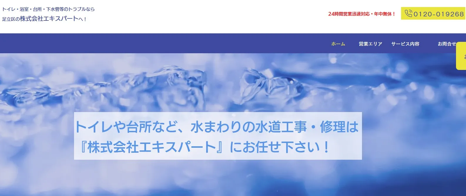 | サービス内容 | トイレ詰まり、トイレ水漏れ、キッチン詰まり、キッチン水漏れ、洗面詰まり、洗面水漏れ、浴室詰まり、浴室水漏れ、蛇口水漏れ、蛇口故障、蛇口交換、トイレ故障、トイレ交換、給水管引換工事、給湯管引換工事、排水管引換工事、高圧洗浄作業、水廻りリフォーム工事全般 |