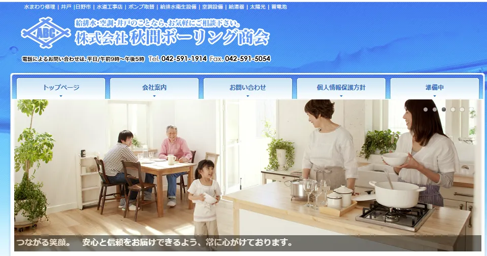 | サービス内容 | トイレ、キッチン、風呂・浴室の水漏れ・つまりの解消。水トラブル全般に対応。給排水衛生設備(設計施工管理)、空気調和設備(設計施工管理)、さく井・ボーリング工事、温泉ボーリング工事、上下水道施設工事、排水管クリーニング(高圧洗浄)、水廻り点検・修理、リフォーム、太陽光・蓄電池システム、各種ポンプ設置・販売、災害支援システム |