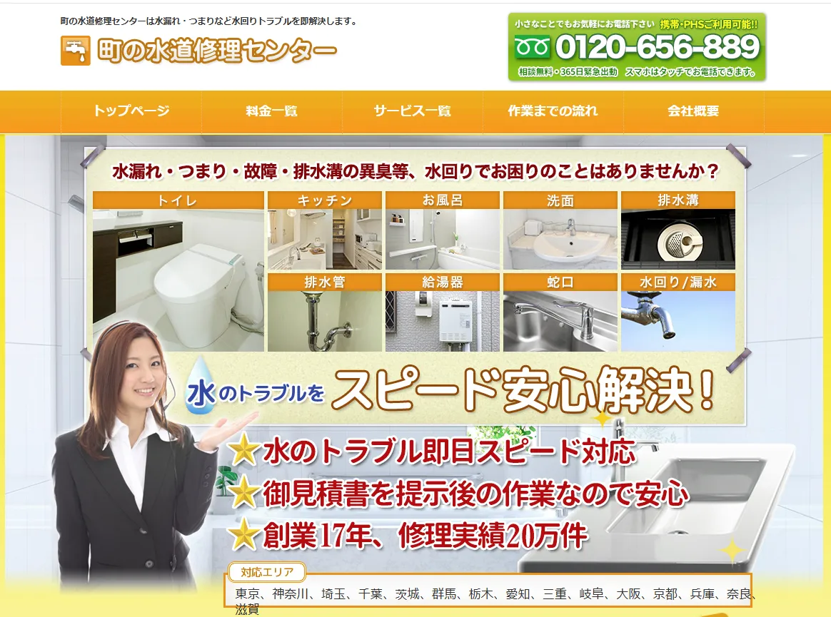 水漏れ以外にも、トイレの詰まり、キッチンの排水口つまり、水トラブル全般の実績を重ねて全国エリアに事業展開しています。