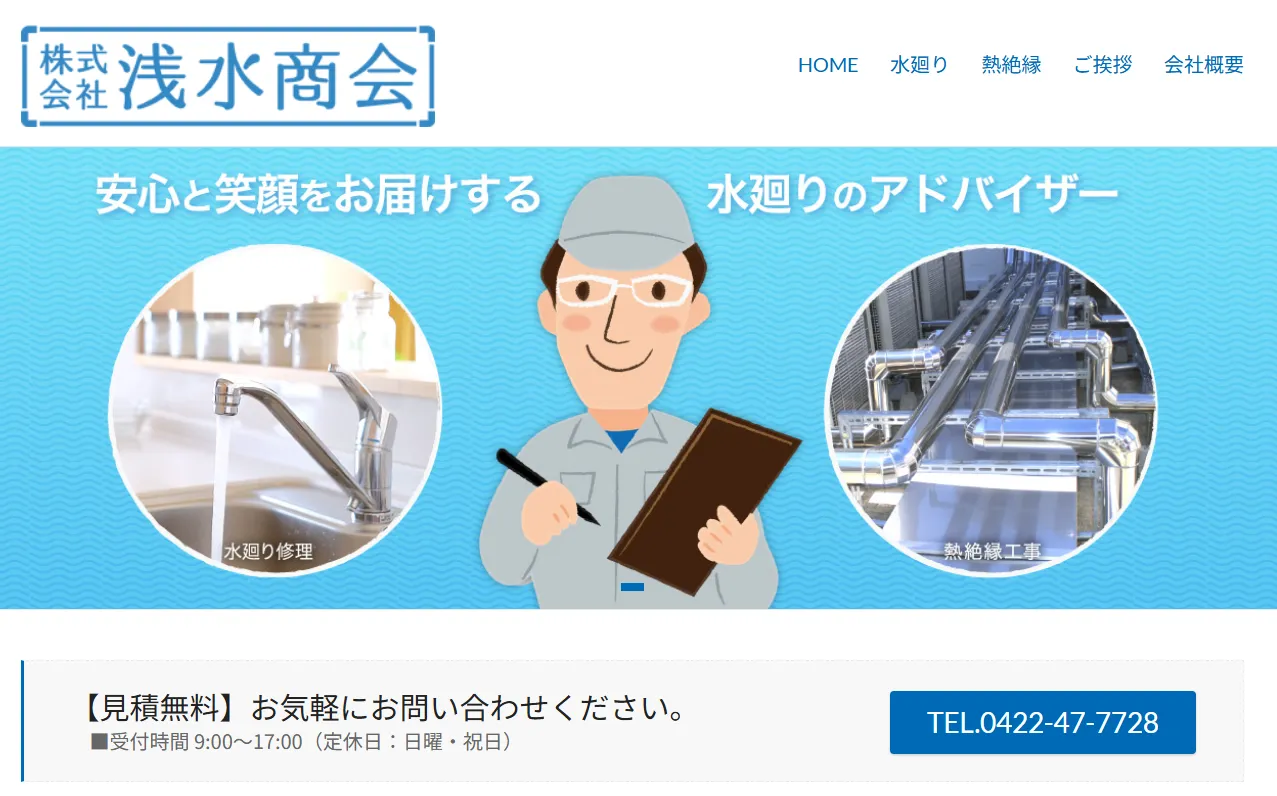 | サービス内容 | トイレ、キッチン、風呂・浴室の水漏れ・つまりの解消。水トラブル全般に対応。熱絶縁工事・水廻り修理及びリフォーム |