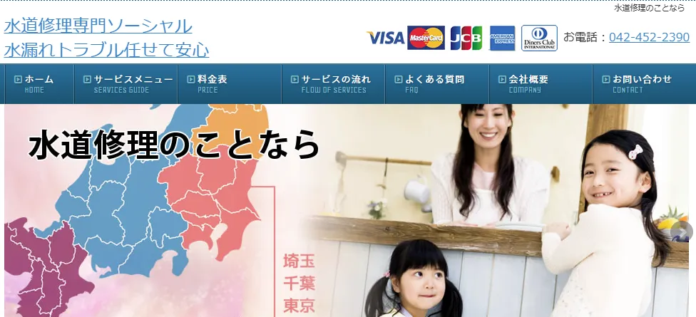 | サービス内容 | トイレ・浴室・キッチン・洗面所・洗濯所・屋外のつまりや水漏れ修理・無料点検・ゴムパッキンの交換、ボルトの締め直しなどの軽作業・つまり解除、薬品洗浄・蛇口の取付など |
