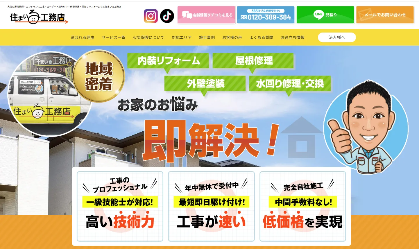 | 対応エリア | 大阪市東淀川区を含む大阪府全域、兵庫県、奈良県、京都府 |