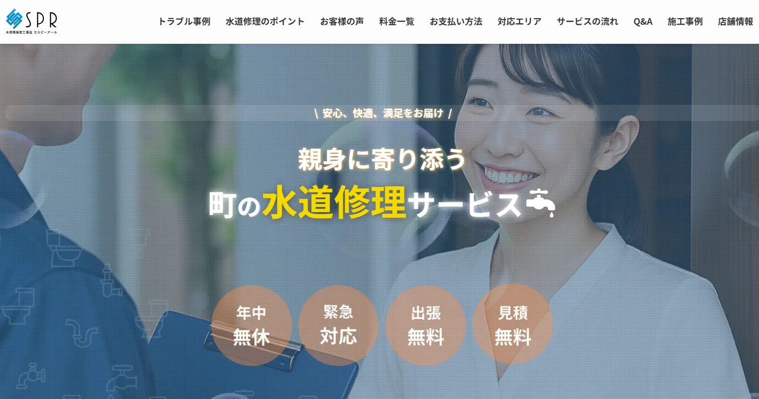 | サービス内容 | トイレ詰まり、トイレ水漏れ、キッチン詰まり、キッチン水漏れ、お風呂詰まり、お風呂水漏れ、洗面化粧台の蛇口水漏れなどの水道トラブル・水回りトラブル全般。蛇口の水漏れ修理、その他の水漏れ修理、各種調査 、排水管清掃、住宅設備・機器交換 |