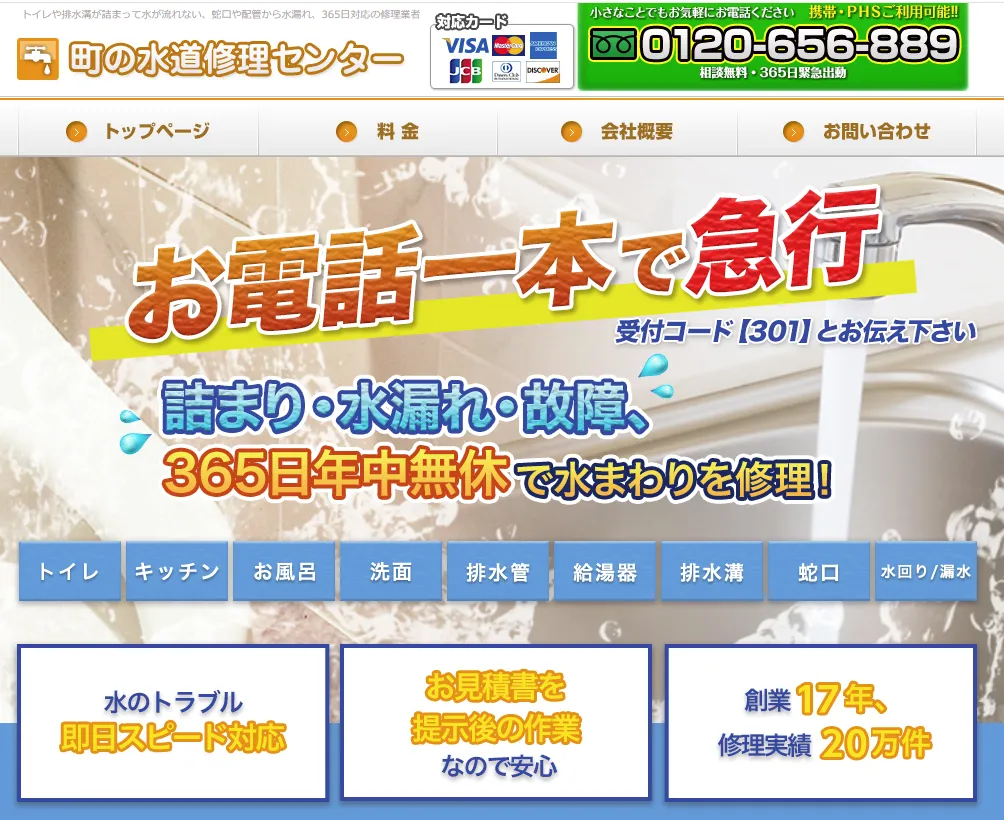 サービス内容トイレ・浴室・キッチン・洗面所・洗濯所・屋外のつまりや水漏れ修理・無料点検・ゴムパッキンの交換、ボルトの締め直しなどの軽作業・つまり解除、薬品洗浄・蛇口の取付など