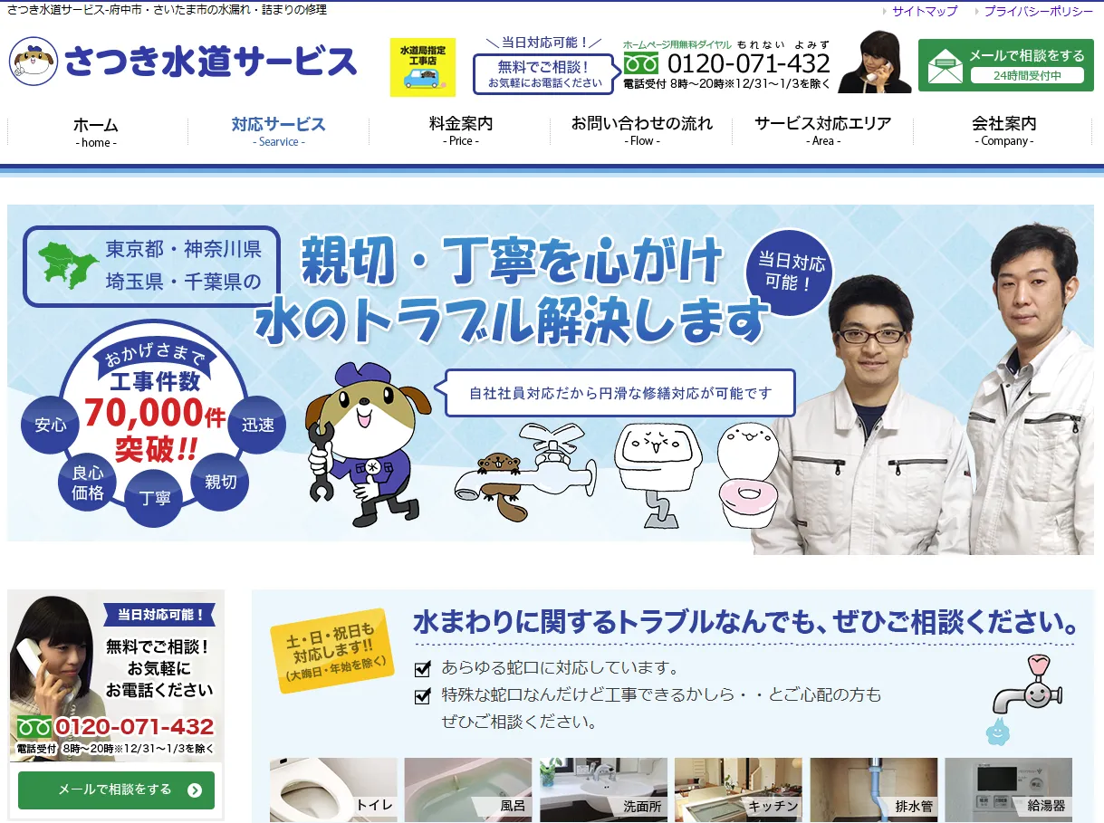 とりあえずスマホで水道修理って検索して、さいたま市南区って書いてあるサイトを上から順番に見て、今すぐ来れるか問い合わせました。
