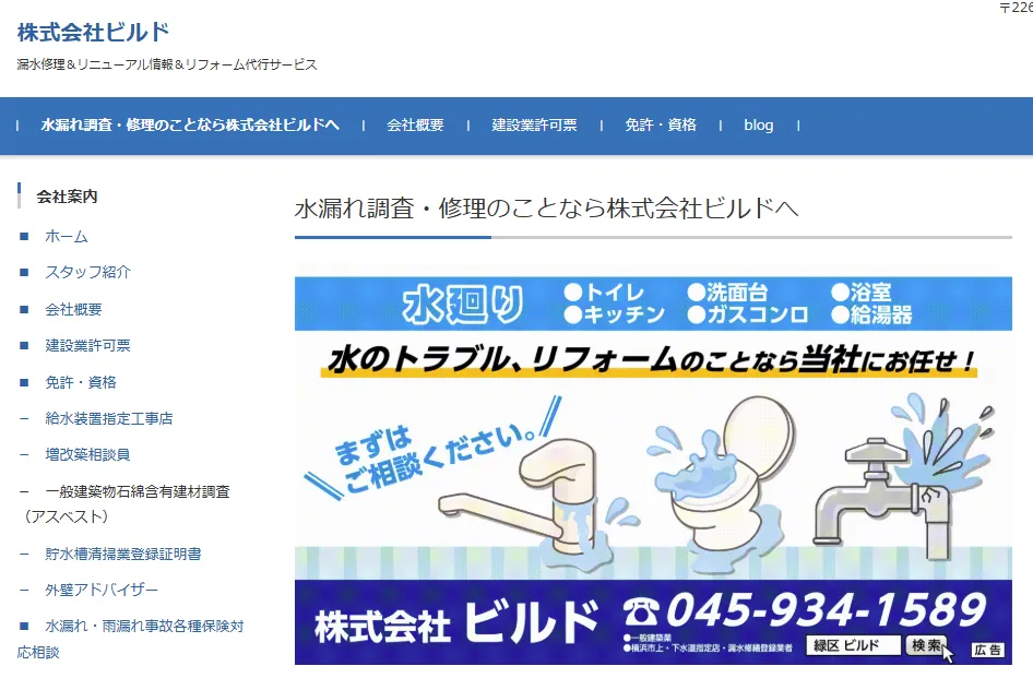 | サービス内容 | トイレ詰まり、トイレ水漏れ、キッチン詰まり、キッチン水漏れ、お風呂詰まり、お風呂水漏れ、洗面台の蛇口水漏れなどの水道トラブル・水回りトラブル全般。各種水廻り機器の修理、交換 (各種水栓金具、洗面、トイレ、キッチン、給湯機等)、水漏れ、配管詰り、雨漏り等の原因調査及び修理、漏水現場の現状回復関連工事 (大工、内装、防水、塗装、その他関連工事) |