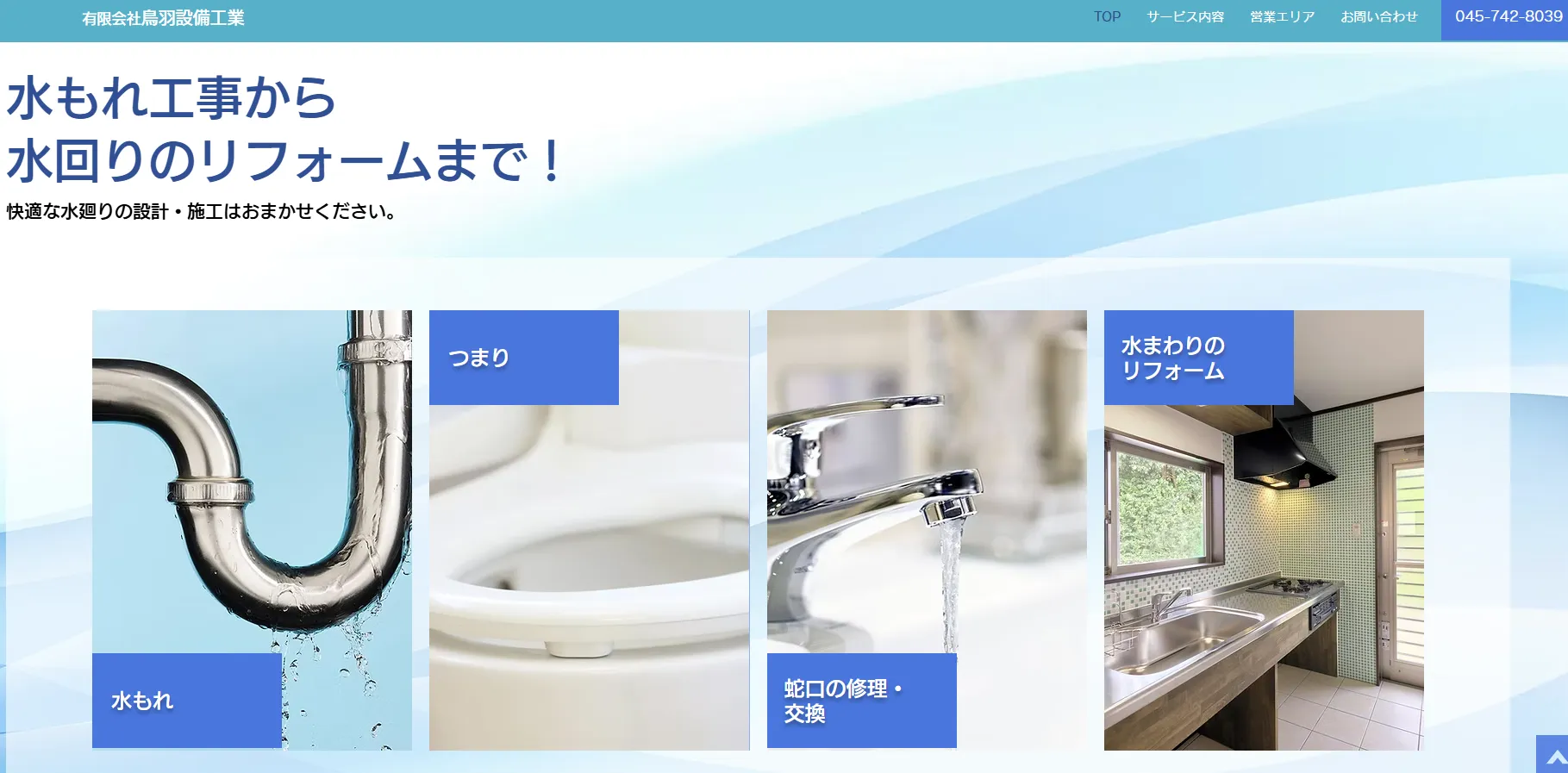 | サービス内容 | トイレ詰まり、トイレ水漏れ、キッチン詰まり、キッチン水漏れ、お風呂詰まり、お風呂水漏れ、洗面台の蛇口水漏れなどの水道トラブル・水回りトラブル全般。水回りのメンテナンス、リフォーム、リノベーションなど |
