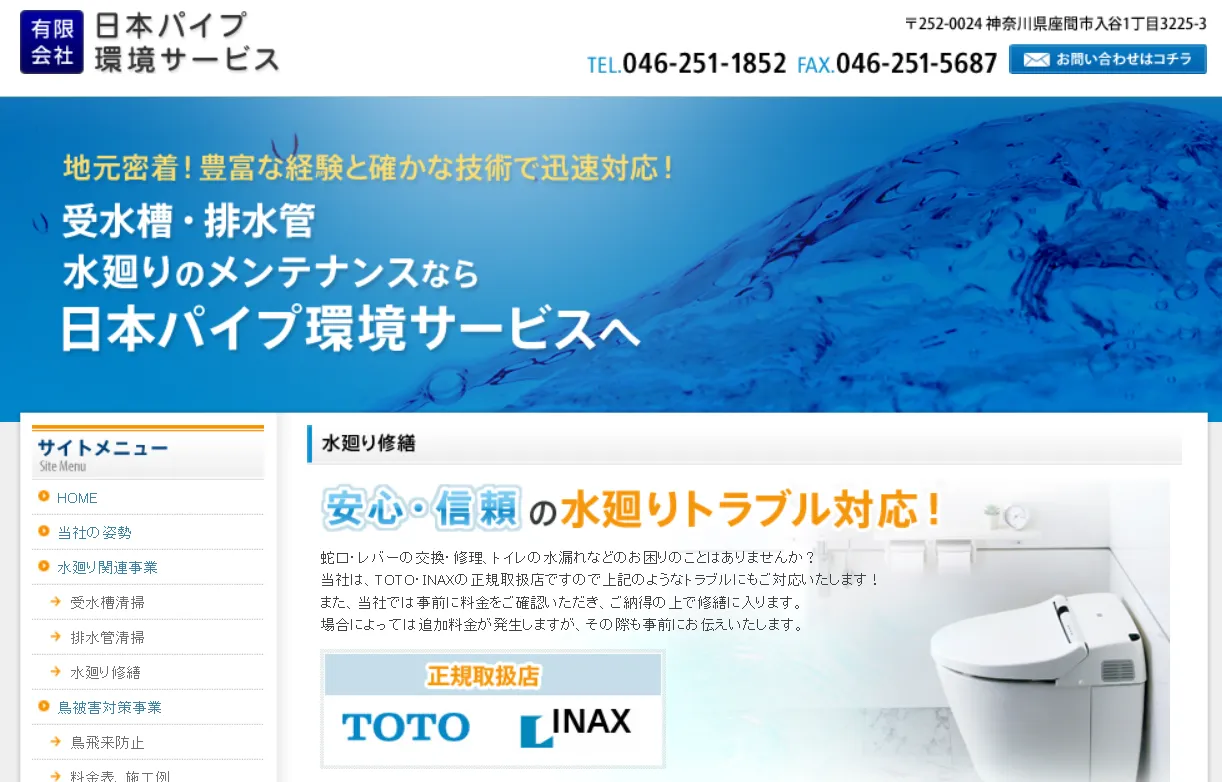 サービス内容トイレ・浴室・キッチン・洗面所・洗濯所・屋外のつまりや水漏れ修理・排水口、ウォシュレットの交換、排水管の異臭、高圧洗浄、その他給排水工事など